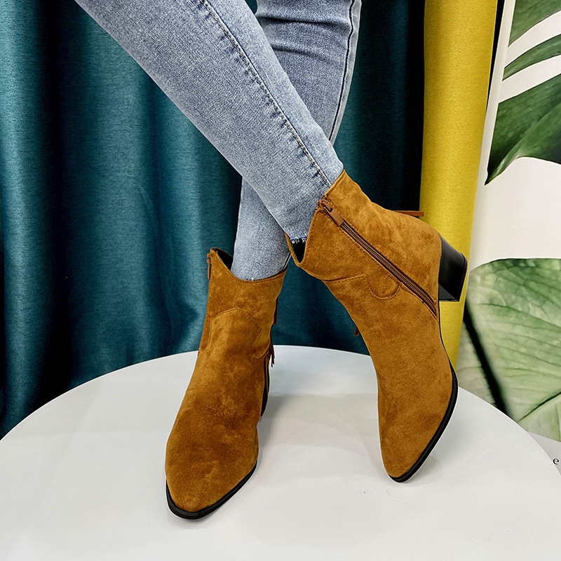 Pointed Chunky Heel Short Boots with Side Zip Boots
