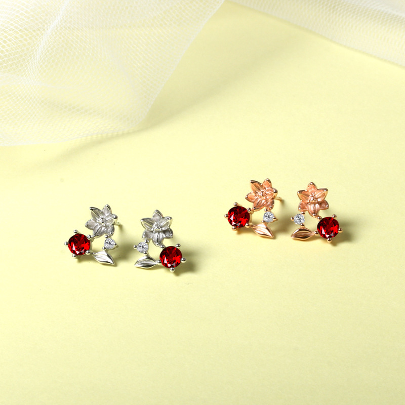 Indulge in the beauty of nature with our exquisite s925 silver earrings, designed to resemble delicate cherry blossoms adorned with sparkling diamonds and vibrant rubies. These fashionable earrings are perfect for adding a touch of elegance to any outfit, whether you're dressing up for a special occasion or looking to elevate your everyday style.
