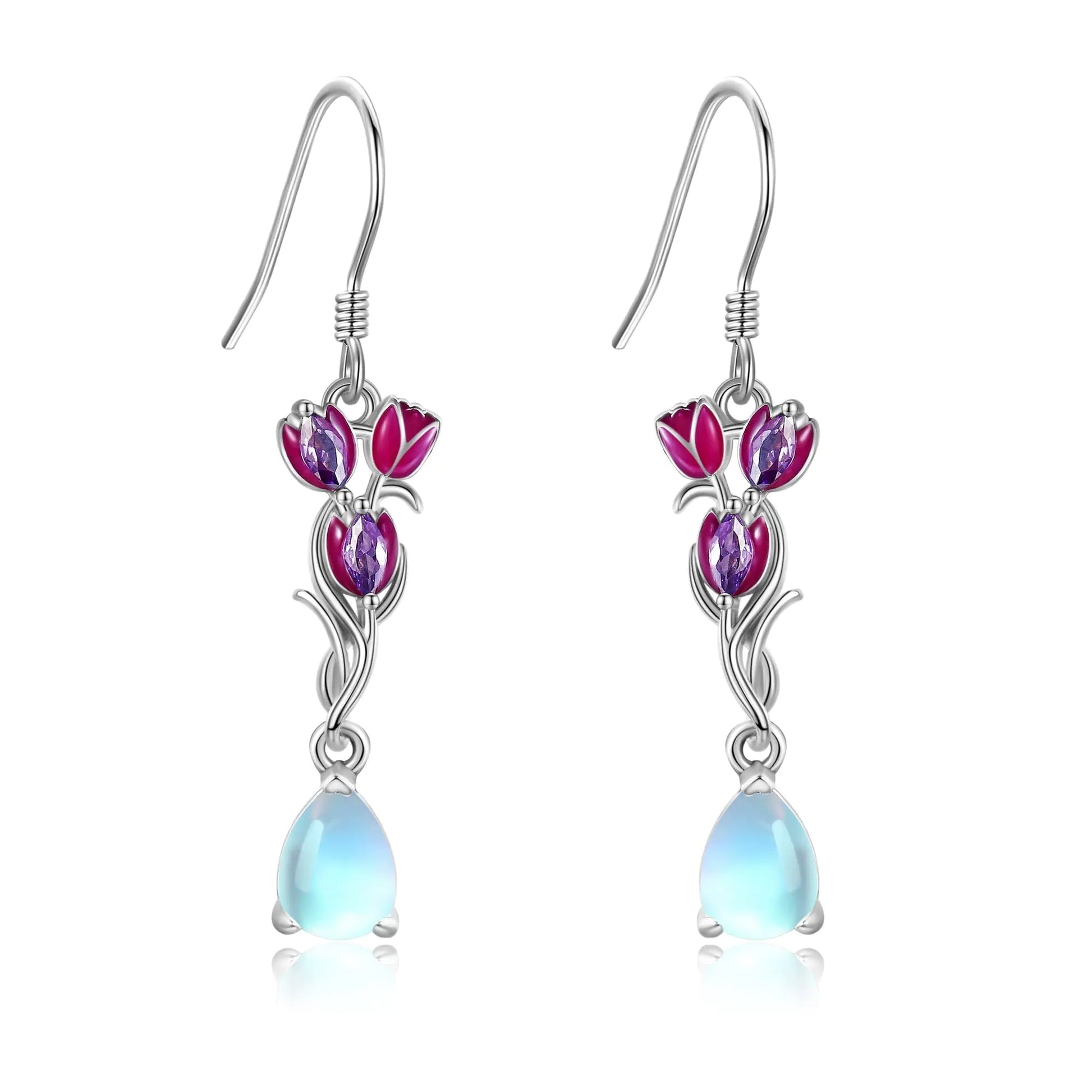 Tulip Earrings Sterling Silver Tulip Dangle Earrings Tulip Jewelry for Women