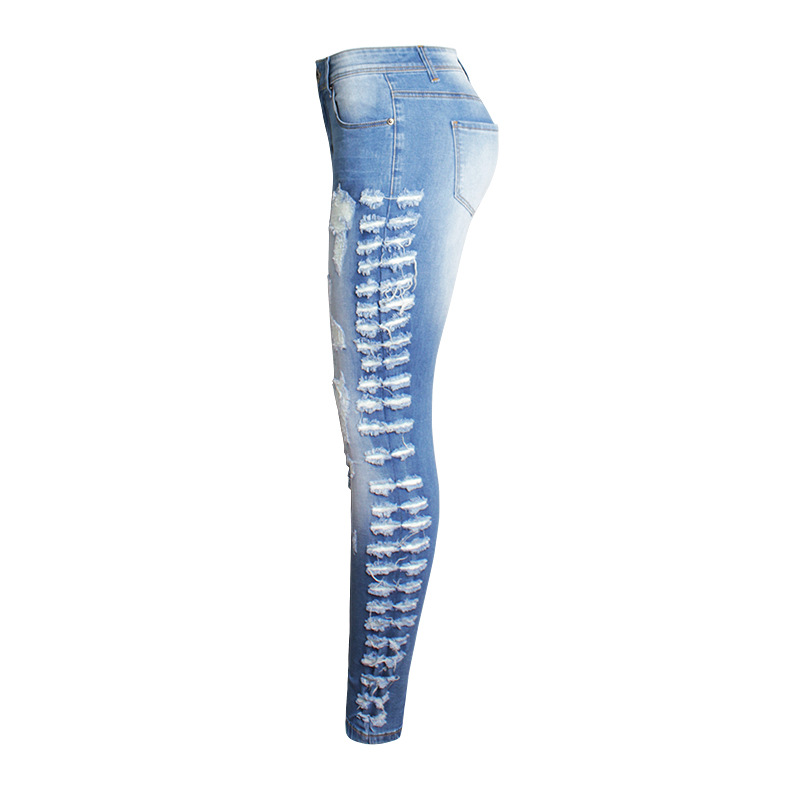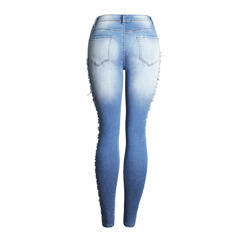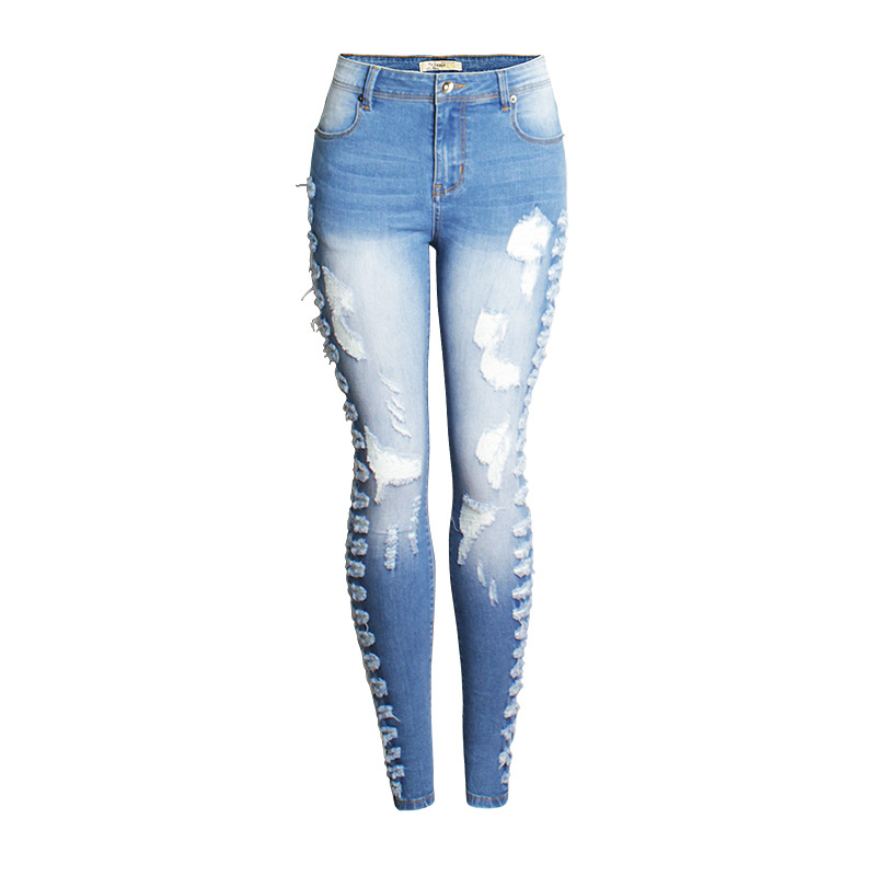 Featuring a pencil pant style with a fashionable middle waist design, these jeans are ideal for the modern woman who appreciates both European and American styles. The street hipster vibe is enhanced by trendy elements such as washing, whitening, and unique scratching patterns that give each pair a distinct look.
