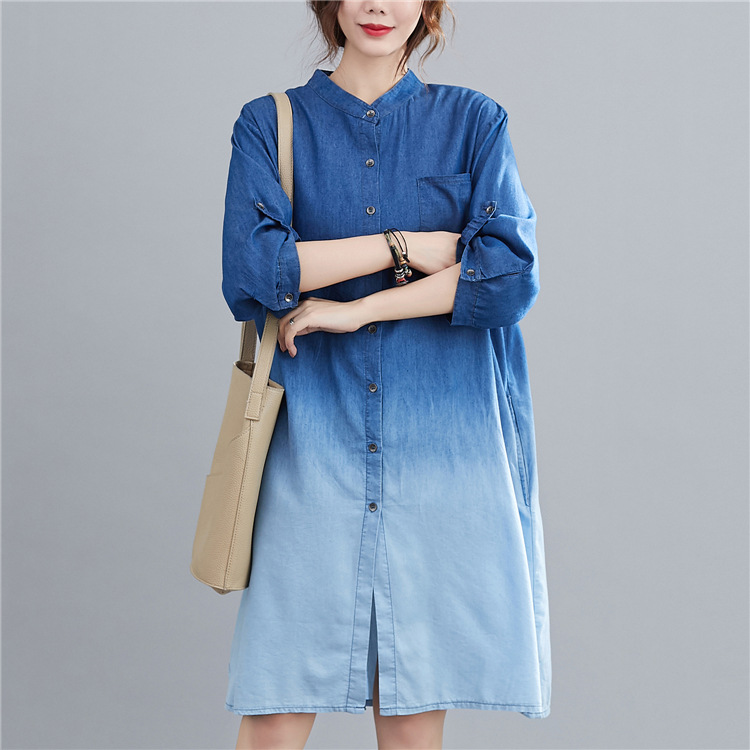 Whether you're dressing up for a casual day out or keeping it relaxed at home, this mid-length denim shirt fits all occasions. The practical pockets and trendy printing/dyeing elements add a modern touch, ensuring you remain stylish and functional.