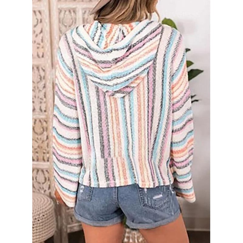 Hooded Rainbow Stripe Loose Fit Sweatshirt