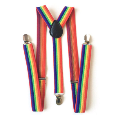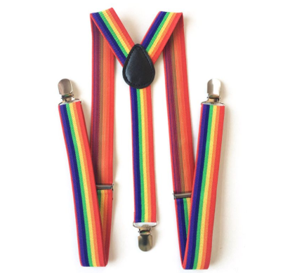 Don't miss out on this vibrant accessory that is sure to turn heads and elevate your fashion game. Order your Rainbow Printed Suspender Clips today and embrace your colorful side!